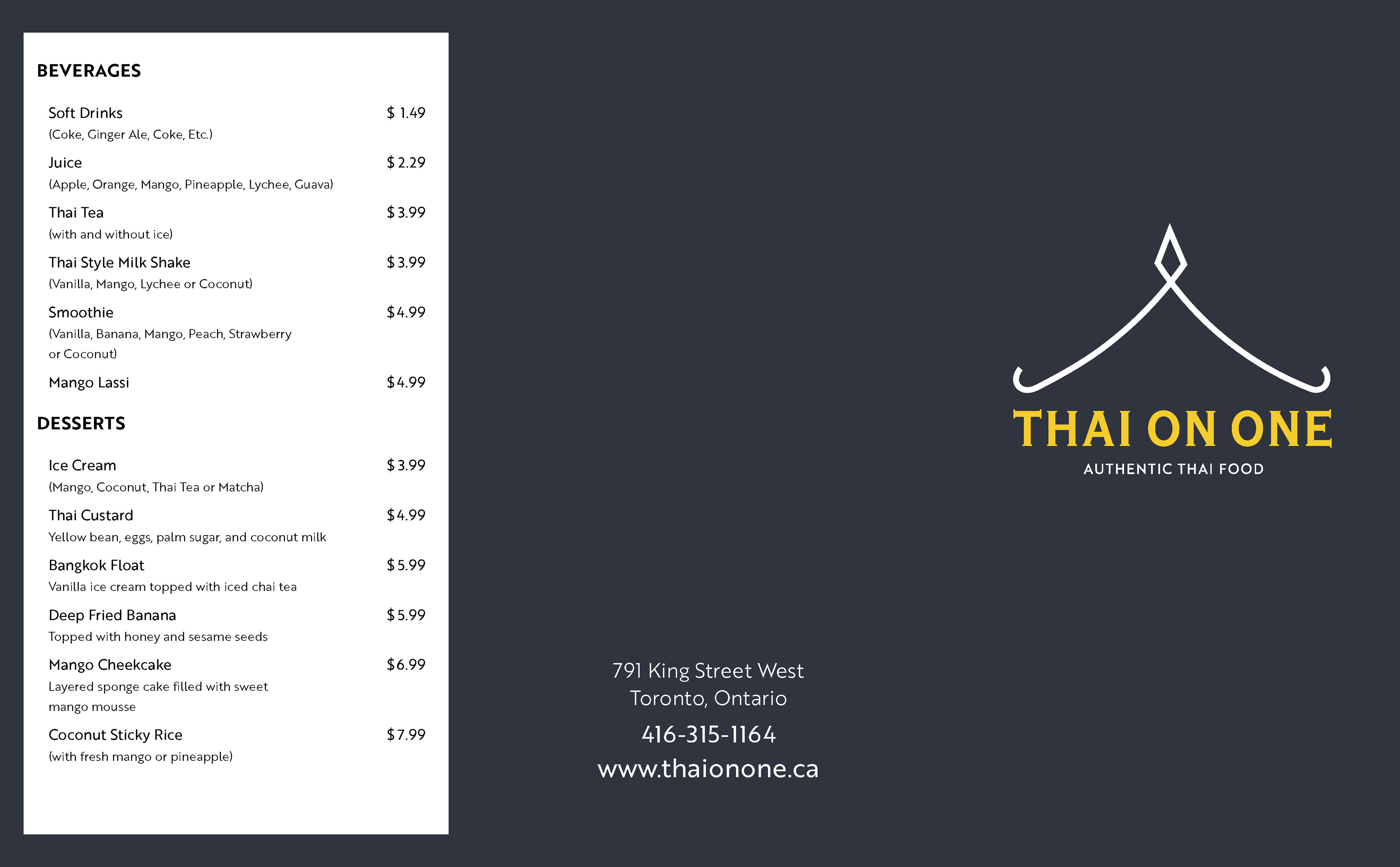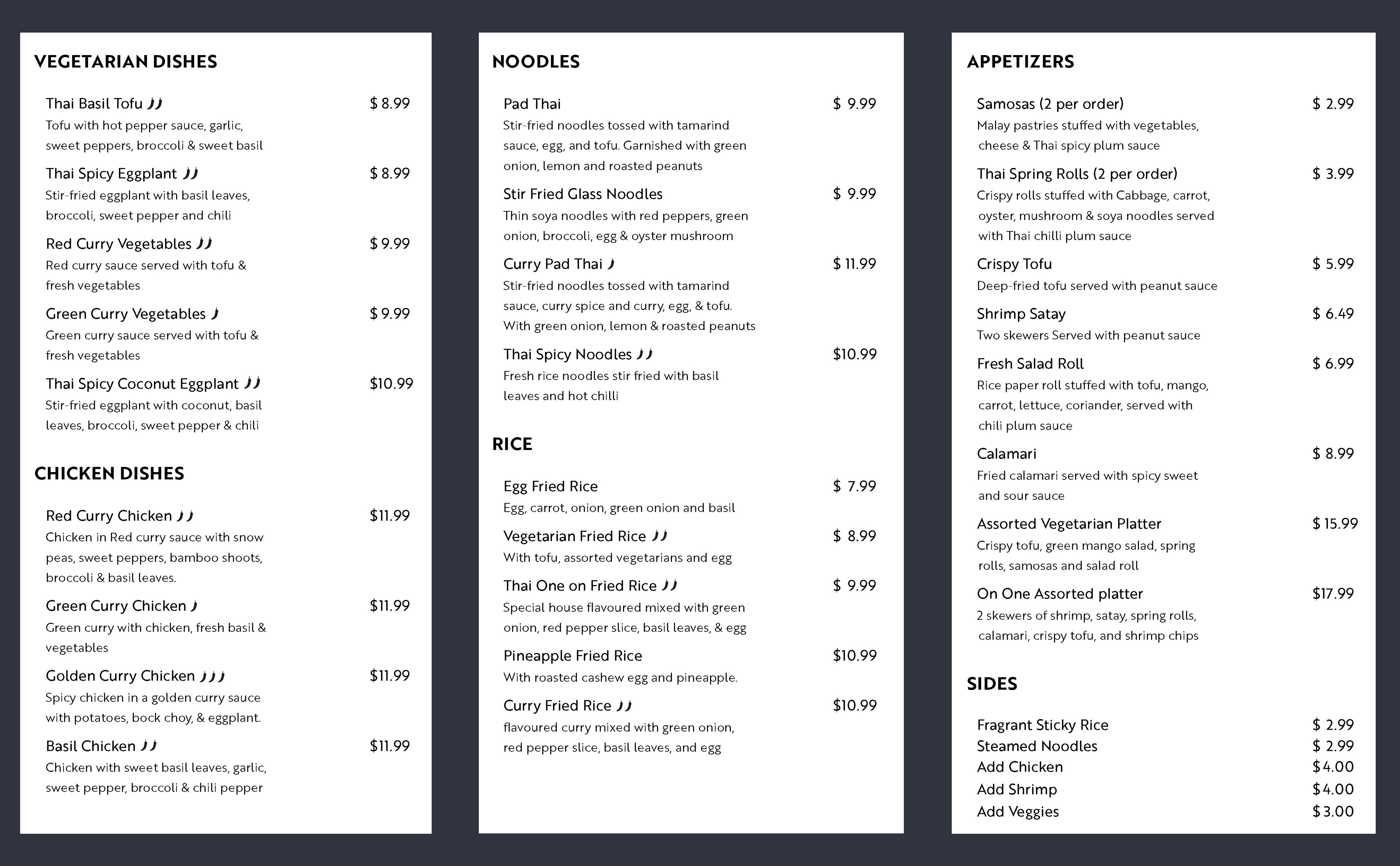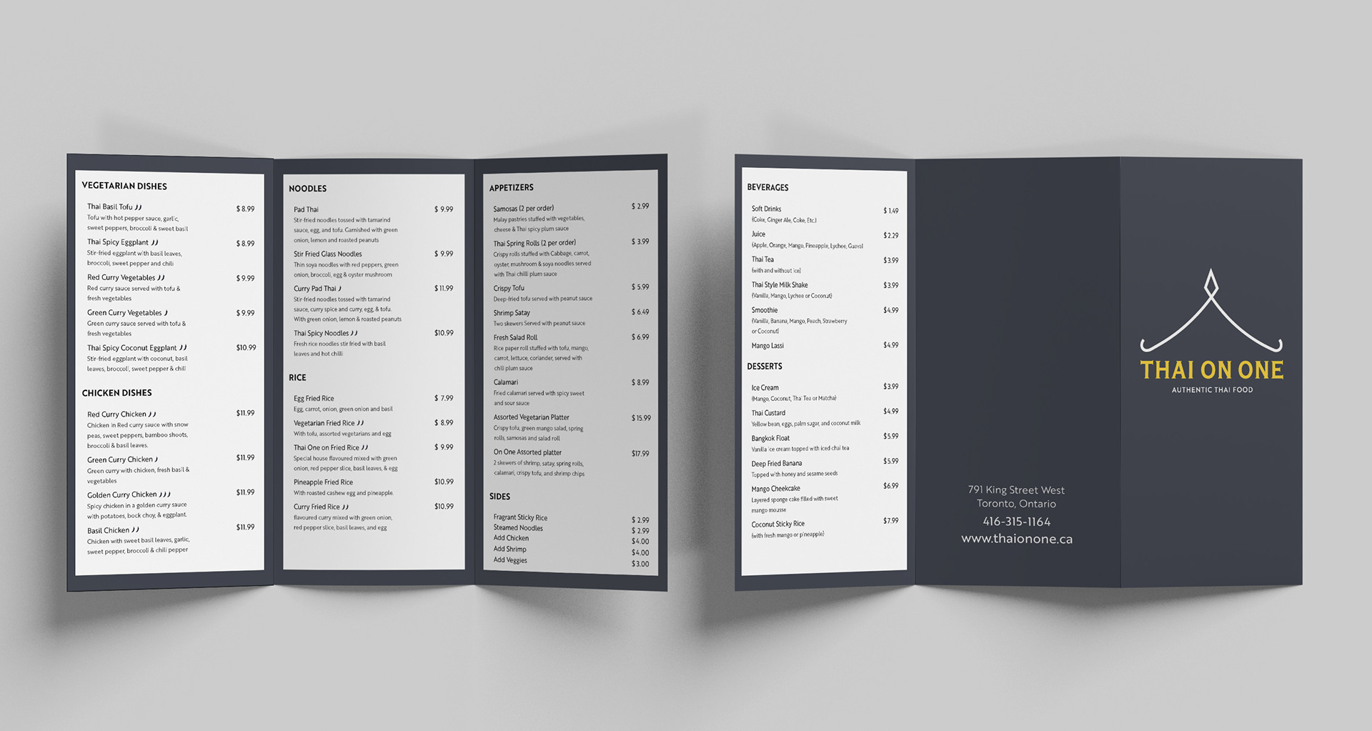 Following Ontario's AODA standards, I created a menu for a fictional Thai restaurant called Thai On One.